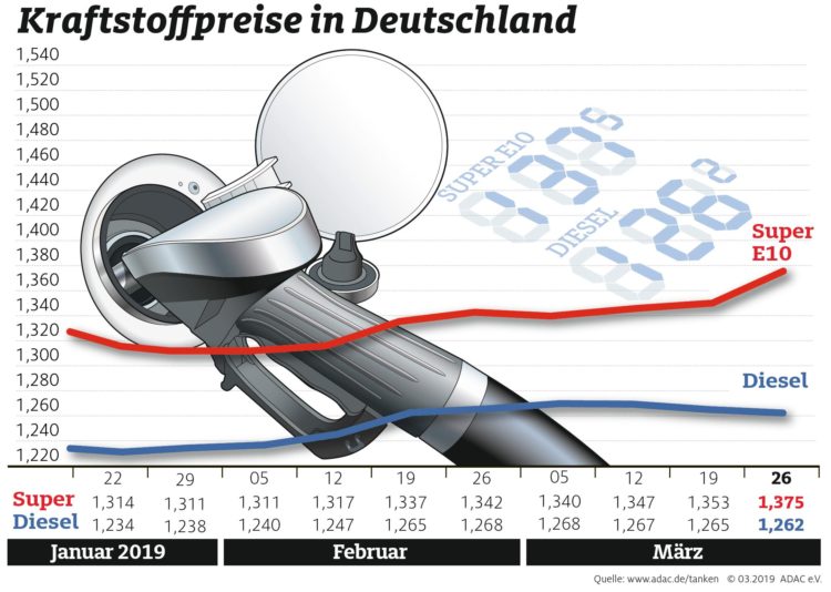 München (ots) Tanken wird wieder teurer – zumindest, wenn man mit einem Benziner unterwegs ist. Laut aktueller Auswertung des ADAC kostet ein Liter Super E10 im bundesweiten Mittel 1,375 Euro und damit 2,2 Cent mehr als in der Vorwoche. Diesel hingegen verbilligte sich um 0,3 Cent auf durchschnittlich 1,262 Euro je Liter. Die Preisspanne zwischen beiden…