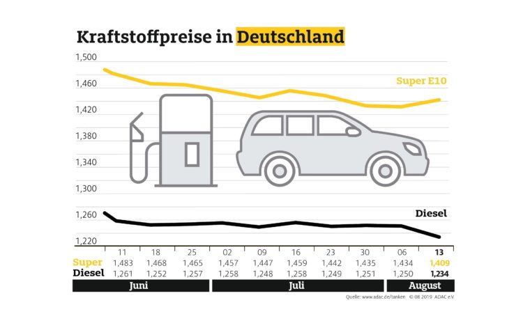 München (ots) Laut einer aktuellen Auswertung des ADAC ist Tanken im Vergleich zur Vorwoche wieder günstiger. Der Preis für einen Liter Super E10 im Bundesdurchschnitt liegt aktuell bei 1,409 Euro – ein Rückgang von 2,5 Cent im Vergleich zur vergangenen Woche. Dieselfahrer tanken bei einem Literpreis von 1,234 Euro immerhin 1,6 Cent billiger als in der…