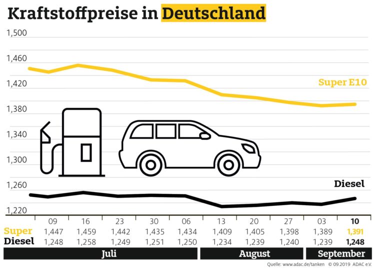 München (ots) Nachdem die Benzinpreise im Bundesdurchschnitt zuletzt sieben Wochen in Folge gesunken waren, ziehen sie nun wieder leicht an. Laut aktueller Auswertung des ADAC kostet ein Liter Super E10 derzeit im Bundesmittel 1,391 Euro, das sind immerhin 0,2 Cent mehr als in der Vorwoche. Diesel verteuerte sich deutlich auf durchschnittlich 1,248 Euro je Liter, ein…