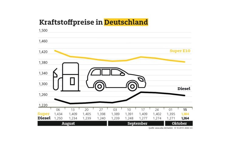 München (ots) In dieser Woche können Autofahrer entspannt an die Zapfsäulen fahren, denn laut aktueller Auswertung des ADAC sind die Preise für Diesel und Super rückläufig. Vor allem bei Super E10 ist der Rückgang mit 1,2 Cent pro Liter deutlich. Ein Liter kostet im bundesweiten Durchschnitt nun 1,384 Euro. Beim Diesel fällt der Preisrückgang mit 0,1…