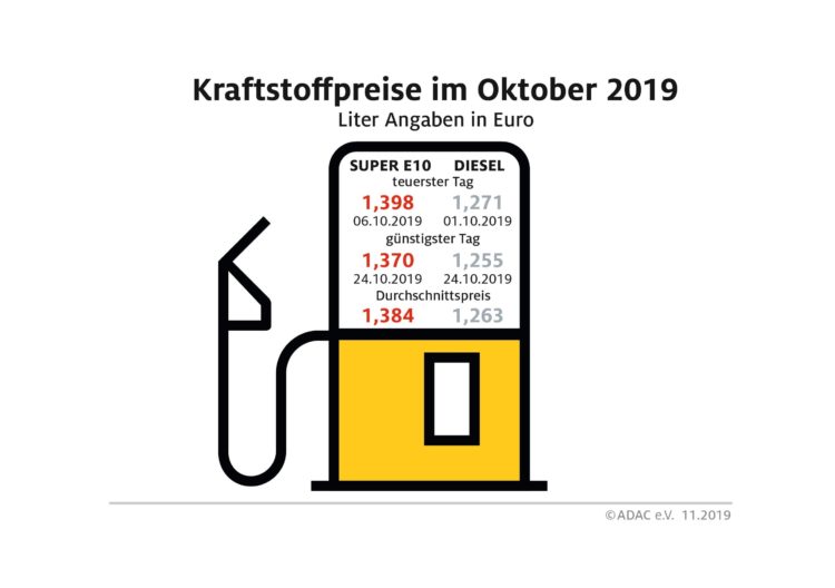 München (ots) Der Preistrend der Vormonate setzte sich beim Tanken auch im Oktober fort. Laut der monatlichen Marktauswertung des ADAC kostete ein Liter Super E10 im Oktober im Bundesdurchschnitt 1,384 Euro, das sind 1,3 Cent weniger als im September und ist zum fünften Mal in Folge weniger als im jeweiligen Vormonat. Diesel hingegen verteuerte sich gegenüber…