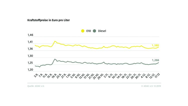München (ots) Nach Wochen eher sinkender Preise müssen Autofahrer beim Tanken wieder tiefer in die Tasche greifen. Laut aktueller Auswertung des ADAC kostet ein Liter Super E10 im Bundesmittel derzeit 1,380 Euro, das sind 0,5 Cent mehr als in der Vorwoche. Diesel verteuerte sich sogar um 1,2 Cent auf durchschnittlich 1,266 Euro je Liter. Die Preisdifferenz…