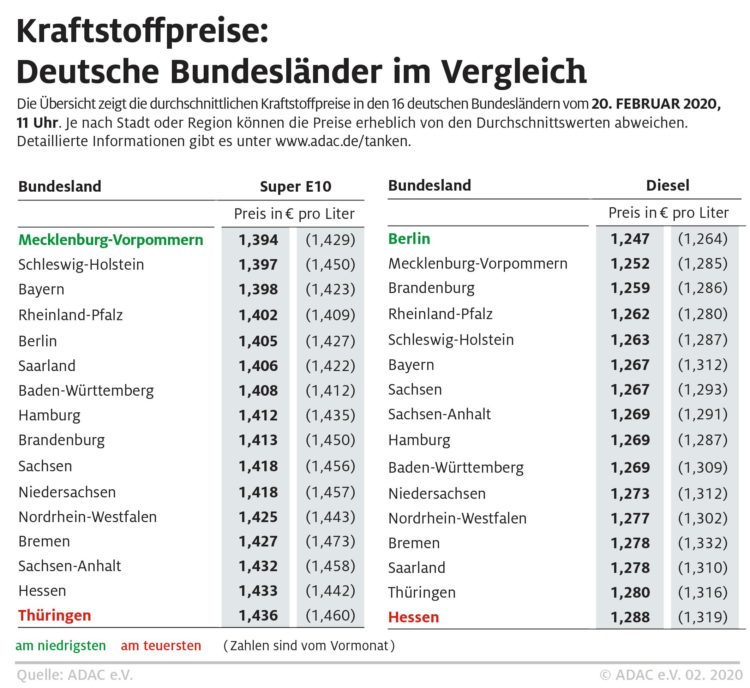München (ots) Autofahrer in Norddeutschland sparen beim Tanken derzeit am meisten. Im aktuellen Bundesländervergleich ist Super E10 in Mecklenburg-Vorpommern mit durchschnittlich 1,394 Euro je Liter am preiswertesten. In Thüringen, dem teuersten Bundesland, muss man hingegen im Durchschnitt 1,436 Euro je Liter bezahlen. Das entspricht einer mittleren Preisdifferenz von immerhin 4,2 Cent je Liter. Diesel ist in…