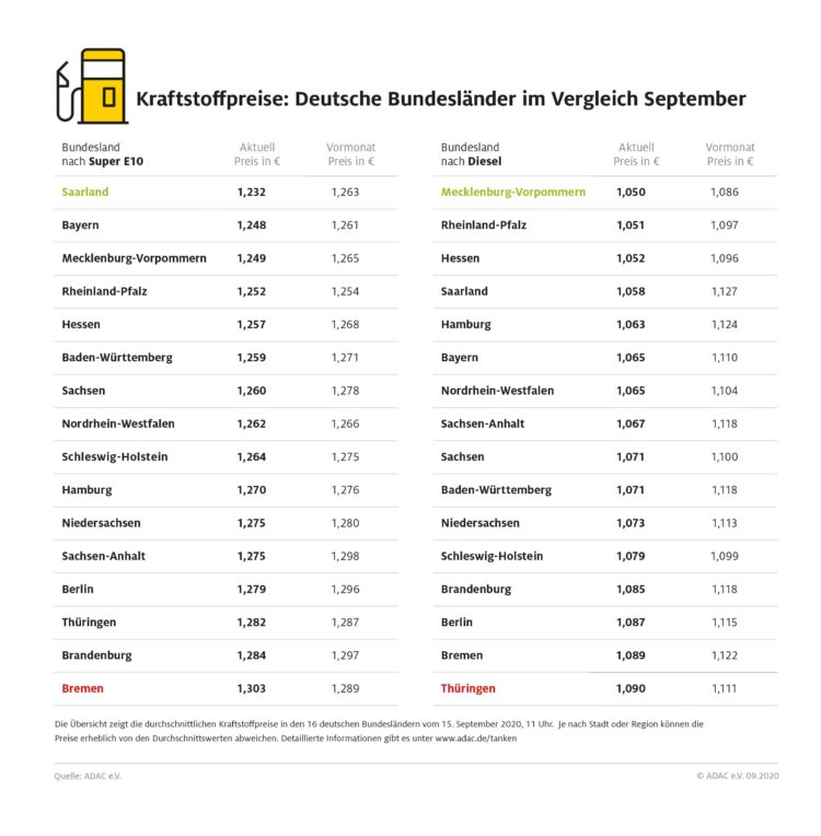München (ots) Die regionalen Unterschiede bei den Kraftstoffpreisen in Deutschland haben sich wieder vergrößert. Dies zeigt der aktuelle Bundesländervergleich des ADAC. Benzin ist derzeit im Saarland am günstigsten. Dort kostet ein Liter Super E10 durchschnittlich 1,232 Euro und damit 7,1 Cent weniger als in Bremen, wo Super E10 am teuersten ist. Noch im August lag der…