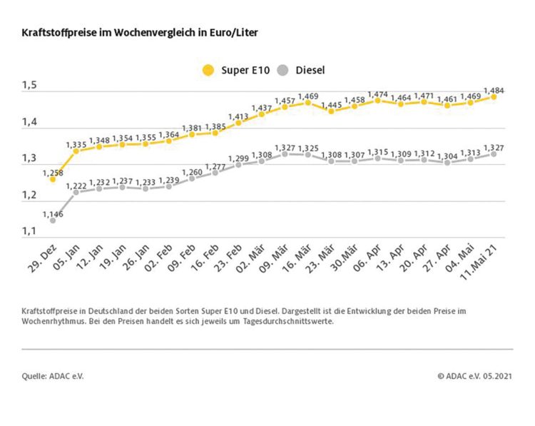 München (ots) Tanken ist erneut teurer geworden – dies zeigt die aktuelle ADAC Auswertung der Kraftstoffpreise in Deutschland. Demnach kostet ein Liter Super E10 im bundesweiten Mittel 1,484 Euro und damit 1,5 Cent mehr als vor einer Woche. Diesel hat sich im selben Zeitraum um 1,4 Cent verteuert und kostet derzeit im Schnitt 1,327 Euro. …