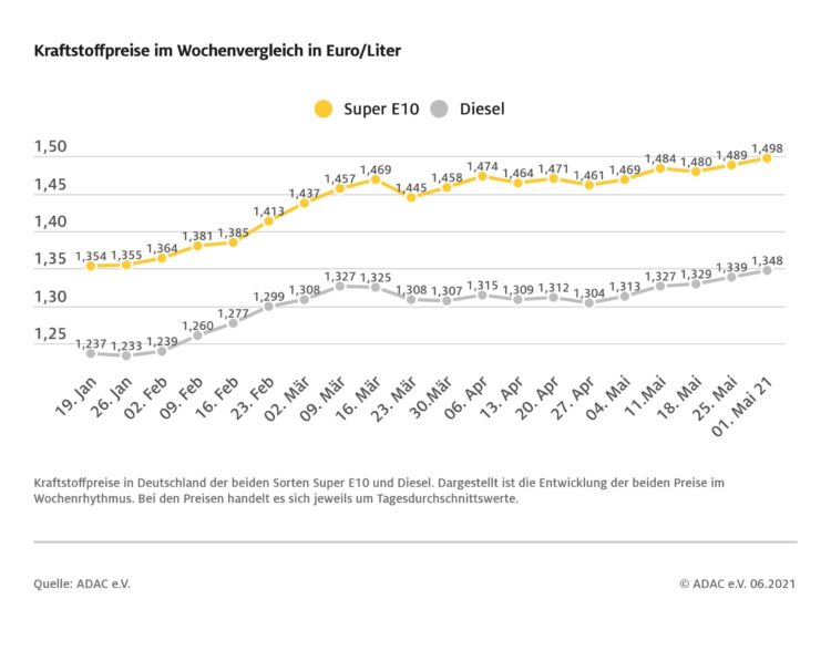 Super E10 kratzt an der Marke von 1,50 Euro – Preise für Benzin und Diesel steigen jeweils um 0,9 Cent – Neuer Jahreshöchststand bei beiden Sorten