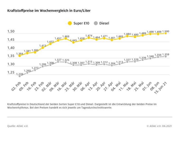 München (ots) – Nach mehreren Wochen eines leichten, aber kontinuierlichen Anstiegs hat der Preis für einen Liter Super E10 die Marke von 1,50 Euro erreicht. Dies zeigt die aktuelle ADAC Auswertung der Kraftstoffpreise in Deutschland. Danach kletterte der Preis für E10 binnen Wochenfrist um 0,2 Cent und kostet derzeit im bundesweiten Mittel 1,500 Euro. Diesel…