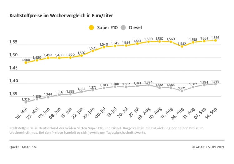 München (ots) – Die Spritpreise sind im Vergleich zu Vorwoche erneut gestiegen. Das ermittelt der ADAC in seiner aktuellen Auswertung der Kraftstoffpreise. Demnach stieg der bundesweite Durchschnittspreis für einen Liter Super E10 um 0,3 Cent auf 1,566 Euro. Diesel kratzt an der Marke von 1,40 Euro: Binnen Wochenfrist ist ein Anstieg von 0,4 Cent zu verzeichnen.…