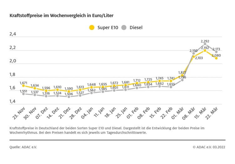 ADAC Spritpreise gegenüber Vorwoche deutlich gesunken – ADAC: Preisniveau immer noch zu hoch