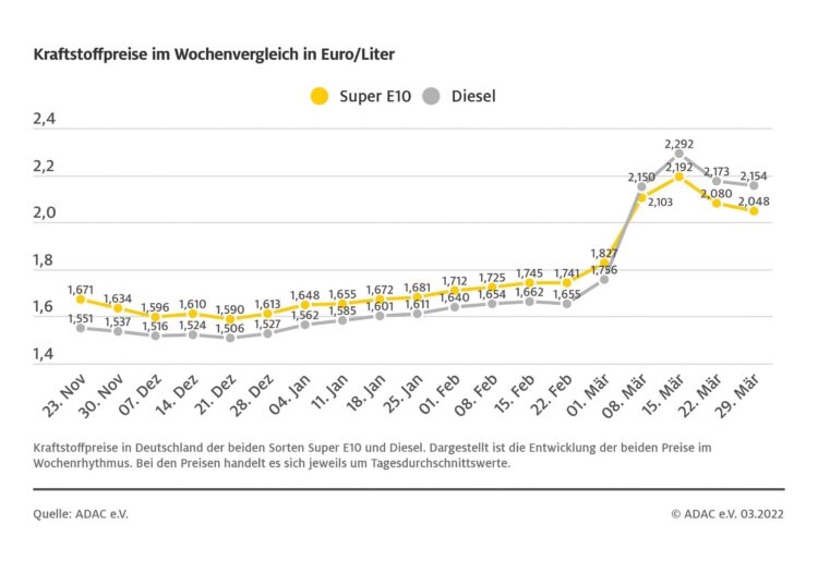 München (ots) – Die Kraftstoffpreise sind im Vergleich zur Vorwoche gesunken – gemessen am Rohölpreis und am Dollarkurs sind sie laut ADAC aber immer noch viel zu hoch. Die aktuelle ADAC Auswertung der Kraftstoffpreise zeigt, dass ein Liter Super E10 binnen Wochenfrist um 3,2 Cent gesunken ist und derzeit im bundesweiten Mittel 2,048 Euro kostet.…