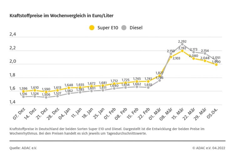 Benzinpreis unter zwei Euro – Tanken bleibt zu teuer – Diesel im Vergleich zur Vorwoche gut zehn Cent billiger – ADAC sieht Potenzial für weitere Preissenkungen