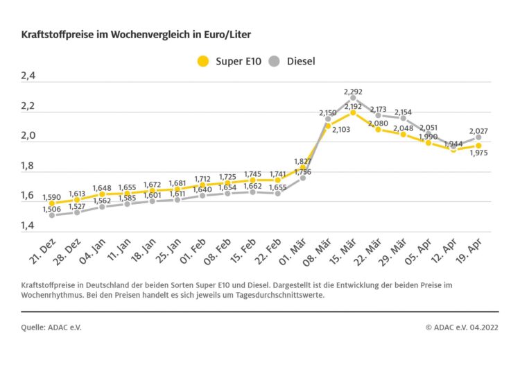 München (ots) – Nachdem die Kraftstoffpreise in den letzten Wochen spürbar gesunken sind, ist die Erholung an den Zapfsäulen in dieser Woche unterbrochen. Sowohl Diesel also auch Super E10 sind im Vergleich zur Vorwoche wieder deutlich teurer. Ein Liter Super E10 kostet laut ADAC Auswertung im bundesweiten Mittel 1,975 Euro und damit 3,1 Cent mehr…