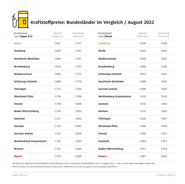 München (ots) Die Preisunterschiede beim Tanken zwischen den deutschen Bundesländern werden immer größer. Die Leidtragenden sind derzeit vor allem die Autofahrer in Bayern, wo deutschlandweit die mit Abstand höchsten Kraftstoffpreise zu bezahlen sind. Als Gewinner dürfen sich momentan trotz allgemein hoher Preise die Verbraucher in Berlin und Hamburg fühlen – hier tankt man zurzeit deutlich…
