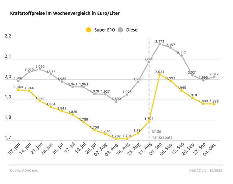 München (ots) Nach einer längeren Talfahrt ist der Preis für Diesel-Kraftstoff wieder über die Marke von zwei Euro gesprungen. Dies zeigt die aktuelle ADAC Auswertung der Kraftstoffpreise in Deutschland. Danach kostet ein Liter Diesel im bundesweiten Mittel 2,012 Euro, das ist ein Plus von 1,6 Cent gegenüber der vergangenen Woche. Kraftstoffpreise im Wochenvergleich. Quelle:…
