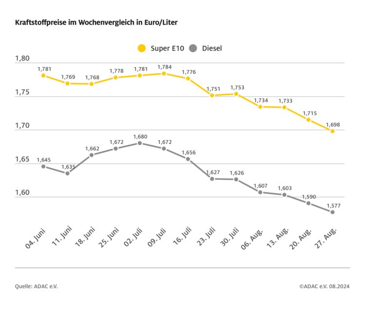 München (ots) – Die Kraftstoffpreise geben im Wochenvergleich weiter nach und erreichen in den letzten Tagen neue Jahrestiefststände. Das geht aus der aktuellen ADAC Analyse der Kraftstoffpreise von rund 14.000 Tankstellen in Deutschland hervor. Im bundesweiten Durchschnitt zahlen Autofahrerinnen und Autofahrer derzeit 1,698 Euro für einen Liter Super E10. Im Vergleich zur Vorwoche ist der…