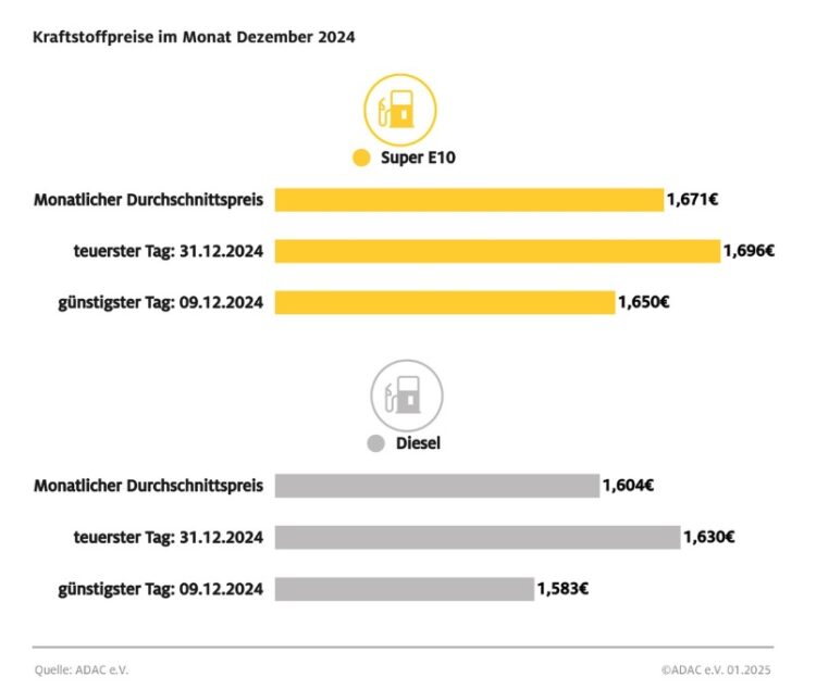 München (ots) Das vergangene Jahr war bezogen auf die Spritpreise insgesamt etwas erfreulicher für die Verbraucher als 2023. Das zeigt der Rückblick des ADAC auf die Kraftstoffpreise 2024. Demnach kostete ein Liter Super E10 2024 durchschnittlich 1,739 Euro, Diesel lag im Jahresschnitt bei 1,649 Euro je Liter. Im Vergleich zum Vorjahr war Super E10 damit rund…