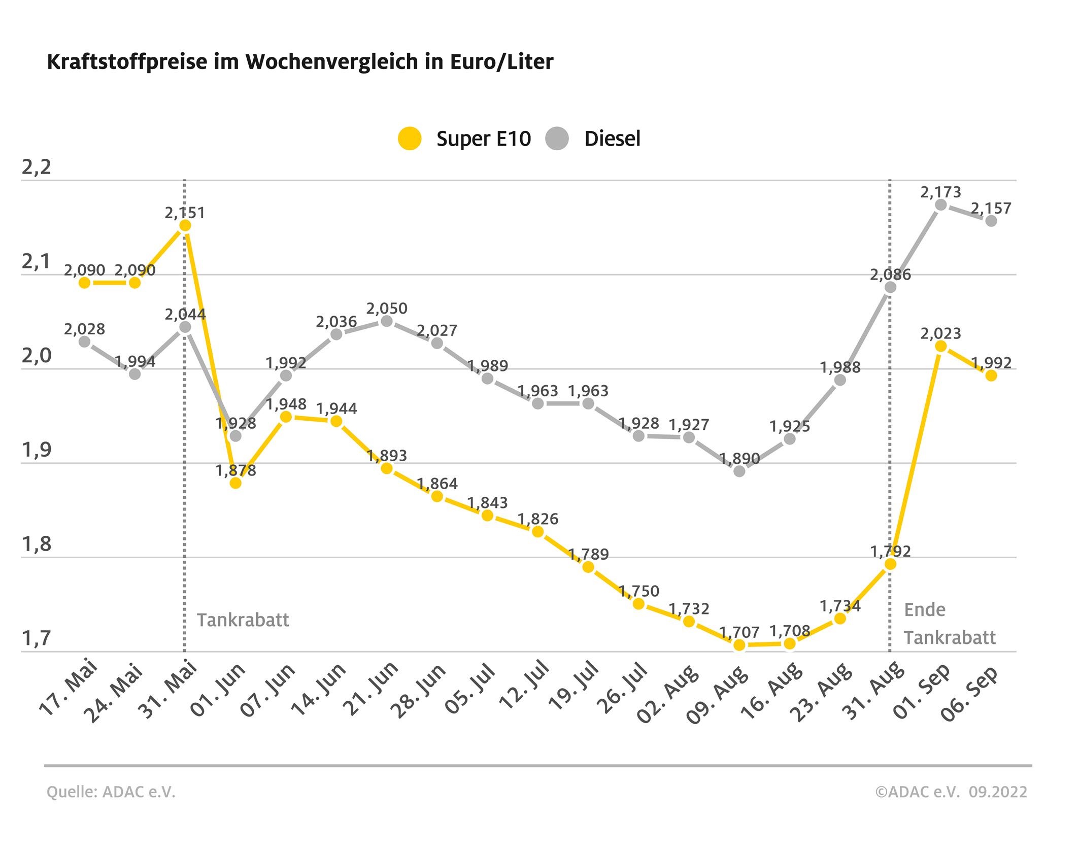 Laut ADAC ist das Ausmaß der Preisanhebungen ebenso wie das aktuell viel zu hohe Preisniveau nicht zu rechtfertigen. Obwohl erst nach dem Ende des Tankrabatts am 31. August die Steuerbelastung bei Benzin um 35 Cent je Liter und bei Diesel um 17 Cent gestiegen ist, wurden die Kraftstoffpreise insbesondere in der zweiten Augusthälfte bereits massiv angehoben. So sind die Preise laut ADAC damals um rund sieben Cent bei Super E10 und 15 Cent beim Diesel gestiegen, obwohl der Ölpreis auf ähnlichem Niveau liegt.