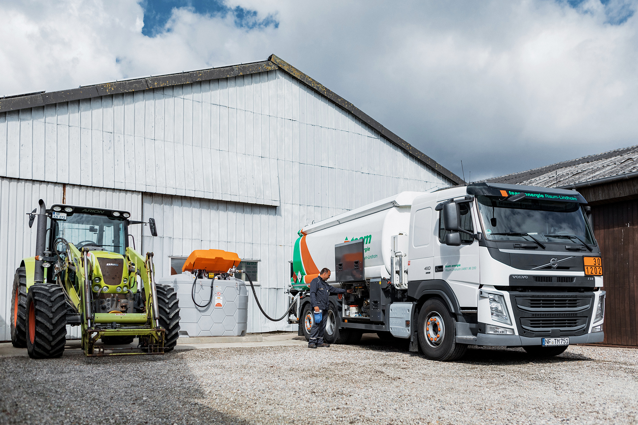 Christian Nissen ist nicht nur Bürgermeister der Gemeinde, sondern auch aktiver Landwirt mit einem kleinen Fuhrpark. Neben dem unter anderem privat genutzten Pkw gehören dazu auch drei Traktoren. Doch anstelle von rein herkömmlichem Diesel, betankt Nissen diese Fahrzeuge nun mit einer fortschrittlichen Kraftstoffkombination. Im Rahmen eines Demovorhabens wird ein deutlich treibhausgasreduzierter flüssiger Energieträger dem konventionellen Kraftstoff beigemischt. Das ermöglicht eine Reduktion der CO2-Emissionen um immerhin rund 25 Prozent. Hergestellt wird das alternative Fuel vorwiegend durch die Hydrierung von Reststoffen biogenen Ursprungs, wie beispielsweise Altspeisefetten. Er gehört zu den erneuerbaren Biokraftstoffen, die nicht in Konkurrenz zur Nahrungsmittelproduktion stehen. Ein chemisch quasi identischer Energieträger wird von Christian Nissen auch bereits als Beimischung in seiner heimischen Heizung eingesetzt.