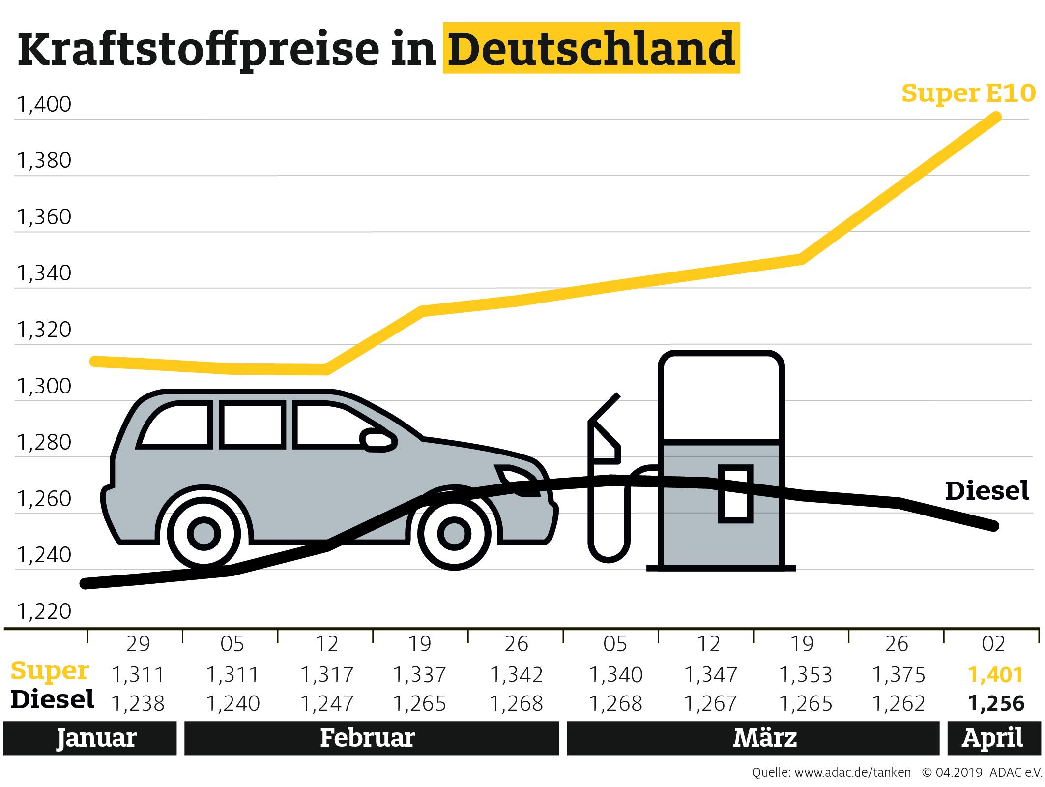 Die Gründe für diese Entwicklung liegen einerseits in den zuletzt wieder gestiegenen Rohölpreisen – ein Barrel der Sorte Brent kostet inzwischen fast 70 Dollar – während andererseits die Winteraufschläge für Diesel wieder nachlassen. Dies führt an den Tankstellen bei Diesel zu einem ruhigen Preisverlauf.
