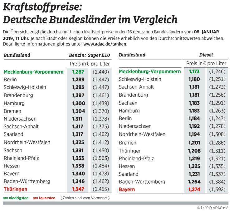 Günstigster Kraftstoff in Mecklenburg-Vorpommern Preisunterschiede zwischen den Bundesländern weiterhin groß