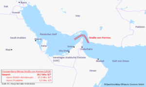 Das Frachtschiff kehrte nach der Explosion wieder um Richtung Straße von Hormus. Diese Meerenge vor der Küste des Irans ist eine der wichtigsten Handelsstraßen für Öltransporte aus dem Nahen Osten Richtung Europa und dem Rest der Welt. Täglich wandern über 20 Millionen Barrel (etwa 3,2 Milliarden Liter) Öl und Ölprodukte durch die Seestraße. In der Vergangenheit hatte der Iran immer wieder mit Blockaden gedroht und den politischen Druck auf die Anrainerstaaten, allen Voran Saudi-Arabien erhöht.