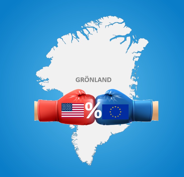 Denn der Streit um die zu Dänemark gehörende Insel hat die Zollstreits aus dem letzten Jahr wieder aufflammen lassen. So drohte der US-Präsident am Wochenende allen Ländern, die sich zwischen ihn und Grönland stellten, mit neuen Strafzöllen. Konkret hieße das 10% mehr Einfuhrzölle für Dänemark, Deutschland, Norwegen, Schweden, Frankreich, Großbritannien, die Niederlande und Finnland – und das schon ab Anfang Februar.